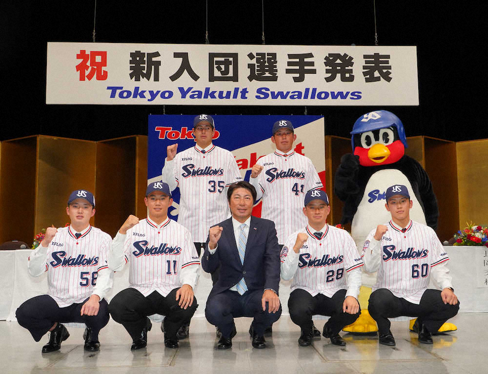 <ヤクルト新入団選手発表>つば九郎に自撮りされる奥川(撮影・島崎忠彦) Photo by スポニチ ヤクルトドラ1奥川、目標はマー君「エースらしい存在」 新入団発表で背番… ギャラリーで見る この記事のフォト 2019年12月03日の画像一覧 もっと見る 2019年12月03日の画像をもっと見る