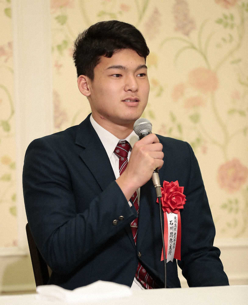 中日ドラ1石川昂「体力技術精神の強化を」 1年目からレギュラー争い誓う
