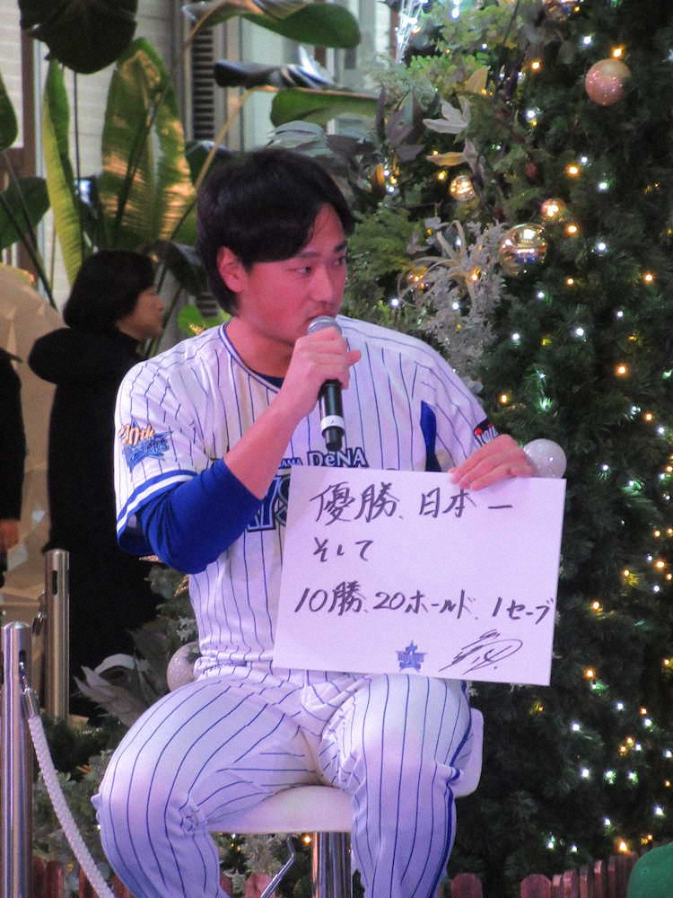 トークショーで来季の目標を披露するDeNA・石田