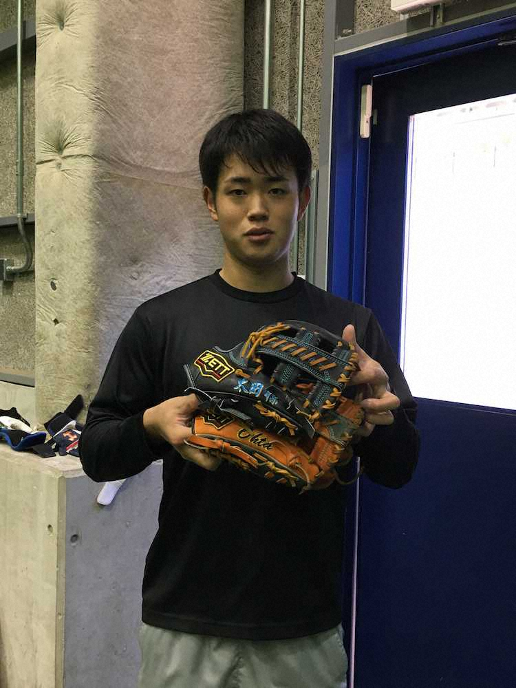 来季2年目のオリックス太田が「新兵器」の存在を明かした。今秋に新調したグラブは、今季まで使用していたものより親指部分を約5ミリほどカット。「ボールを握るときに、たまに(グラブに)当たる。1年目の反省をいかそうと思った」と説明した。