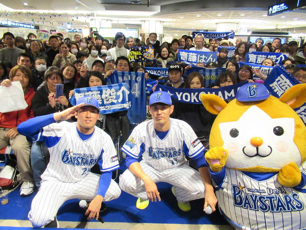 ファンからの質問コーナーでは「筒香選手は大リーグに行きますが、行きたいですか?」と質問が。井納はかぶせるように「俺無理だよ。33歳だぜ?獲ってくれる球団ないもん」と即答。また年末年始の予定を聞かれた斎藤は「寮を出たので鍋パしようよって友達に片っ端から声かけます」と宣言した。
