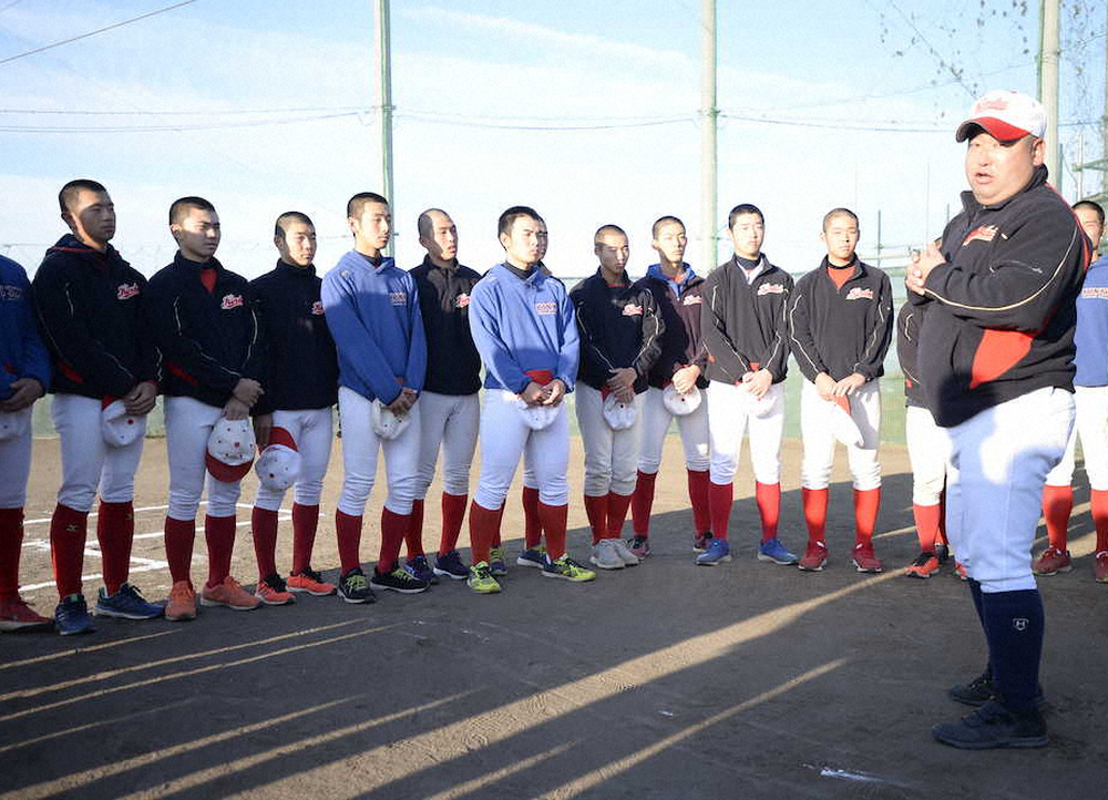文武両道の精神の下、週3日は午後4時15分終了の8限目まで授業がある。60人の部員が一堂に会することも難しい。テストの「赤点」も60点未満と厳しい。グラウンドは東海地区大学野球連盟に所属する4、5年生と共有する中、今秋の三重県大会を初制覇し、東海大会でも8強入りした。特に県大会準々決勝のいなべ総合戦では延長13回タイブレークを3―2で制し、指揮官も「我慢して耐え抜いて勝った試合は初めてだった」と話す。主戦の白石晃大(2年)は「ここに来た理由の一つが“高専史上初の甲子園出場”。好きな言葉は“下克上”なので、強いところを倒したい」と話した。(北野 将市)