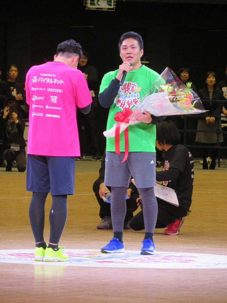 楽天・則本昂が、ヤクルトに移籍する嶋の魂を継承する。仙台市内で行われたイベント「嶋基宏とゆかいな仲間たち」に参加。4037人のファンの前で、バッテリーを組んできた先輩に花束を渡し「嶋さんの存在の大きさを再確認した。教わったことを若い選手にフィードバックしていかなければ」と涙を流した。
