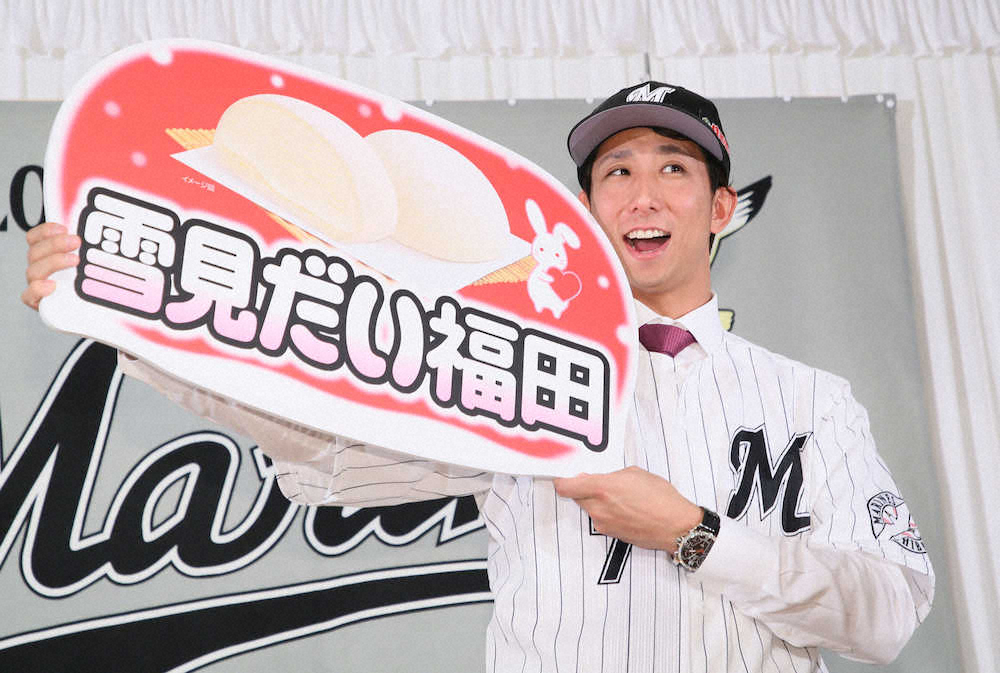 ソフトバンクから国内FA宣言し、4年総額6億円でロッテへ移籍した福田秀平外野手(30)は15日、千葉市内のホテルで入団会見を行い、背番号「7」を初披露した。