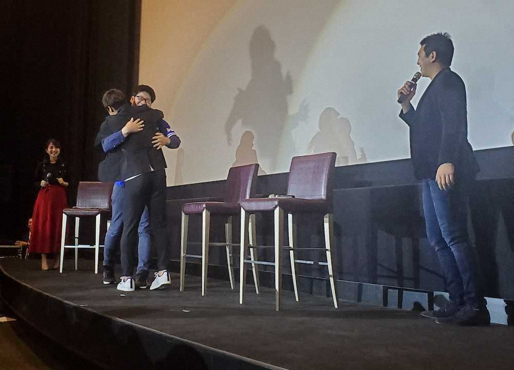 男性ファンは緊張の面持ちながら、伊藤光に抱擁されるという大サービスに大喜び。