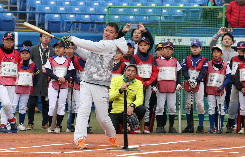 この日は小雨もぱらついた神宮球場で熱く、温かく子どもたちと交流した。野球教室では実演も見せ、マイクを握っては芸人顔負けのトーク。自らの原点でもある野球の楽しさを改めて強調した。