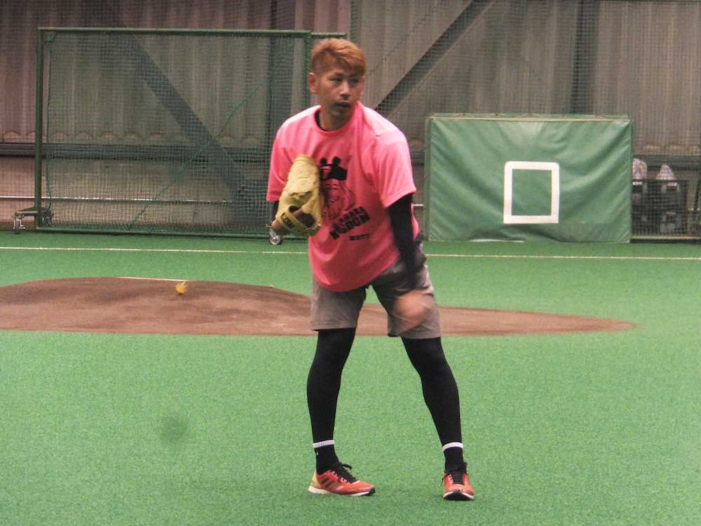 札幌市内の室内練習場で自主トレを行った日本ハム・加藤