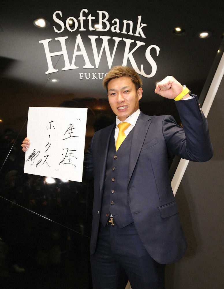 ホークスカラーのネクタイで会見する柳田(撮影・岡田 丈靖) Photo by スポニチ ソフトB柳田 メジャー封印、日本人最長7年契約 5・7億円で23年まで減俸… ギャラリーで見る この記事のフォト 2019年12月26日の画像一覧 もっと見る 2019年12月26日の画像をもっと見る