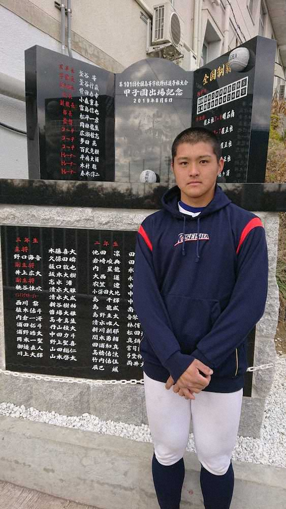 今春選抜大会では初戦で奥川擁する星稜(石川)に敗れたが、夏は決勝でリベンジ。春夏ともにベンチ入りしていただけに「先輩達がどう変わったのかを1年を通して見ることができた。僕たちがそれを伝えたい。経験を生かして引っ張っていきたい」と話す。徹底的な走り込みで太もも周りは夏から5センチアップして、65センチに。「二塁送球で蹴る(右足の)力が強くなった感じはある」。強く意識する盗塁阻止率のさらなる向上に向けても、地道な努力を重ねている。