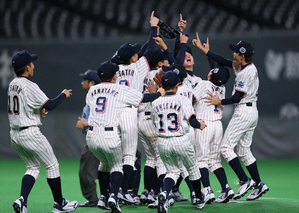 度会監督は次男・隆輝(現横浜高2年)がヤクルトJrに所属した14年大会(ヤフオクドーム)の予選リーグ敗退を応援席で見届け、監督となった前回大会も準決勝で涙をのんでいた。「球団創立50周年に優勝で花を添えられた」とナインに感謝していた。