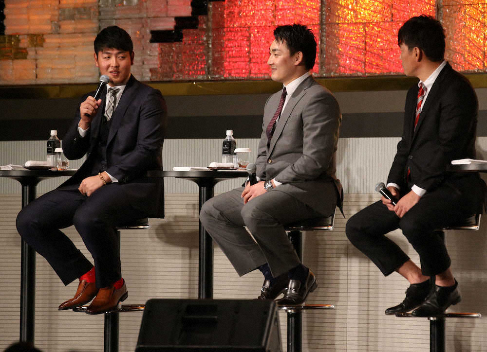 トークショーでは2万円と1800円のメロンの「利き味対決」も行われ、契約更改の席上で球団に「完熟」を要望した岡本が高級メロンを的中させた。黒ひげ危機一発対決では次々と短剣を挿し込み「躊躇(ちゅうちょ)なくいくよな!」と、丸から思い切りの良さを称えられる一幕もあった。出塁率4割超の3番に、130打点の4番。この2人なら、決して夢物語ではない。(神田 佑)
