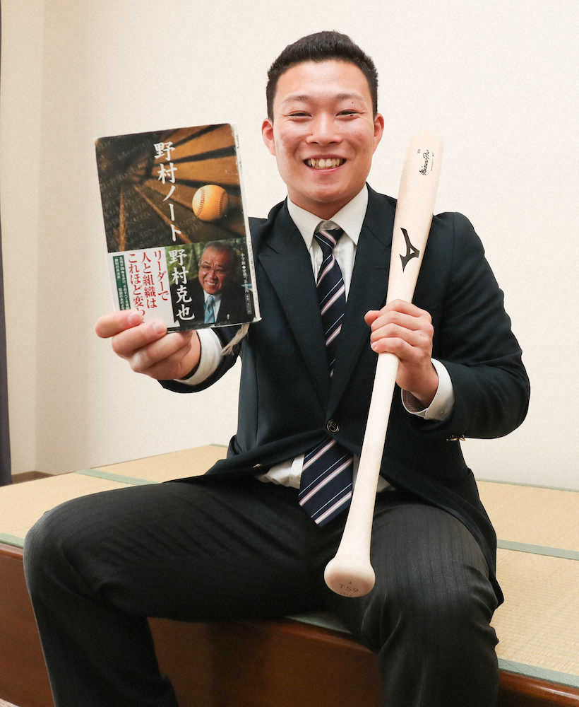 元ヤクルトの野村克也氏の著書「野村ノート」と高校時代のバットを部屋に持ち込み、新生活をスタートさせた。