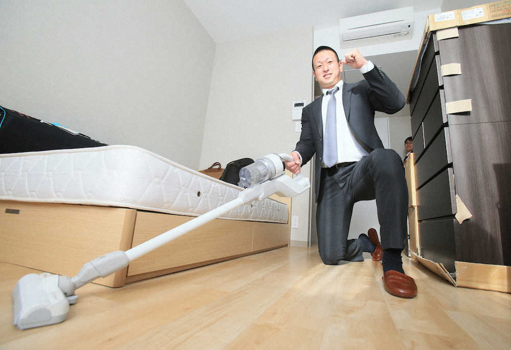 部屋で落ち着くための相棒も持参した。3万円相当の東芝製掃除機だ。「奇麗好きで、ひまがあれば掃除する」。プロへの第一歩として、古巣への愛社精神とともに、身辺を清潔に保つことにも力を注ぐ。