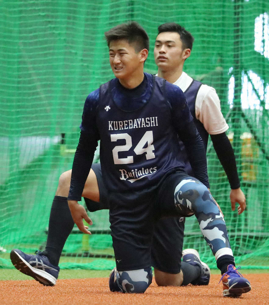 首脳陣が見守る中、新人合同自主トレでは内野ノックを受けるなど軽快な動きを披露。全体練習後には黙々とマシン打撃を敢行した。偶然、同施設で自主トレしていたT―岡田や頓宮らの姿を目にし、「凄い体。エグい。自分はまだ体力がないと思う。春季キャンプに向けて、ケガをしない体作りをしていきたい」と意気込んだ。