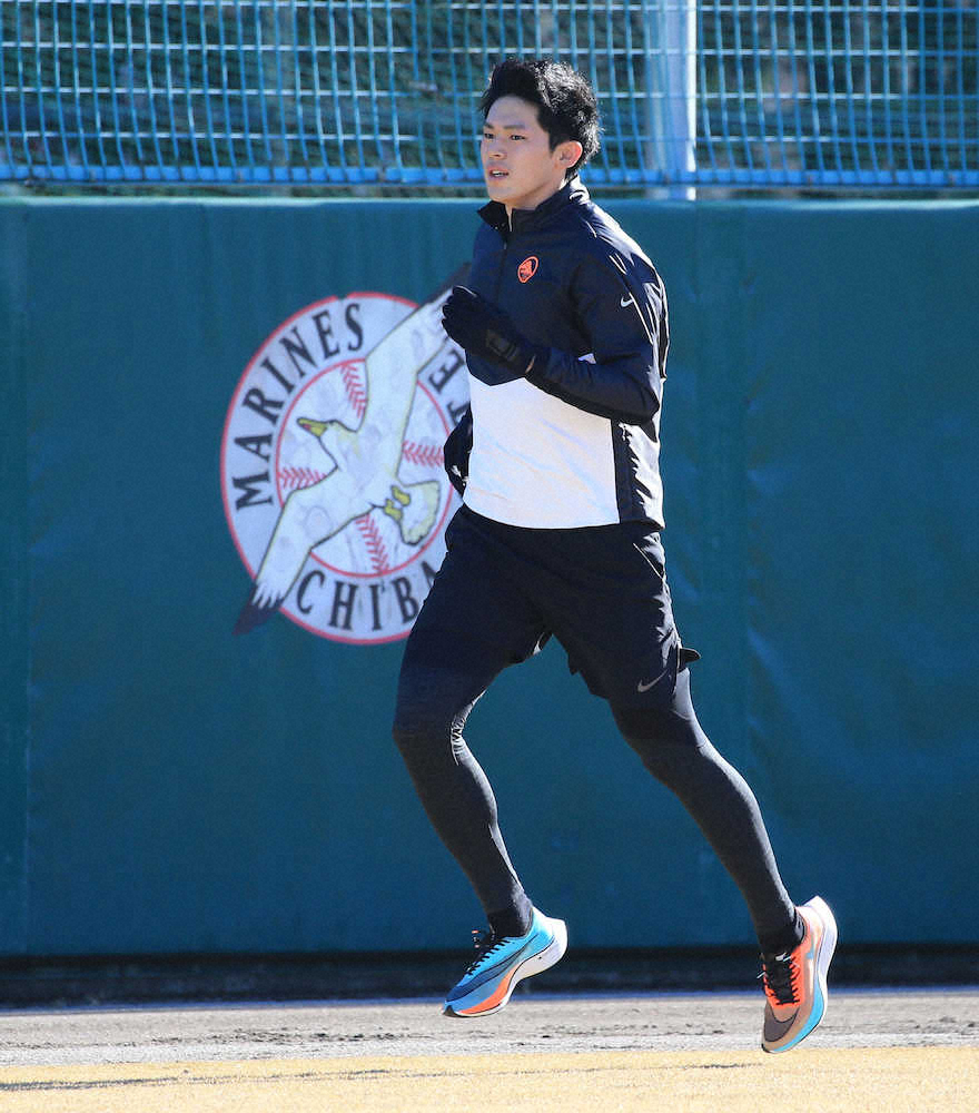 <ロッテ自主トレ>ランニングをする佐々木(撮影・西尾 大助)