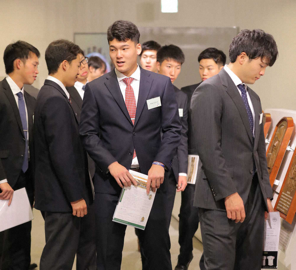 中日のドラフト1位・石川昂(東邦)は、都内で行われたNPB新人選手研修会で闘争心をかき立てた。U18W杯では全8試合で4番に座った世代最強打者。共に戦った阪神・西純ら同士たちと久々に顔を合わせて談笑もしたが、会が終わると表情も一変し、「全員がライバルなので、特に同級生には負けたくないと思った。奥川とは対戦したことがないので、やってみたい」と宣戦布告した。