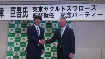 ヤクルト・高津監督 亜大で監督就任記念パーティー 先輩・中日の与田監督に競争心「中日をまたいでV」
