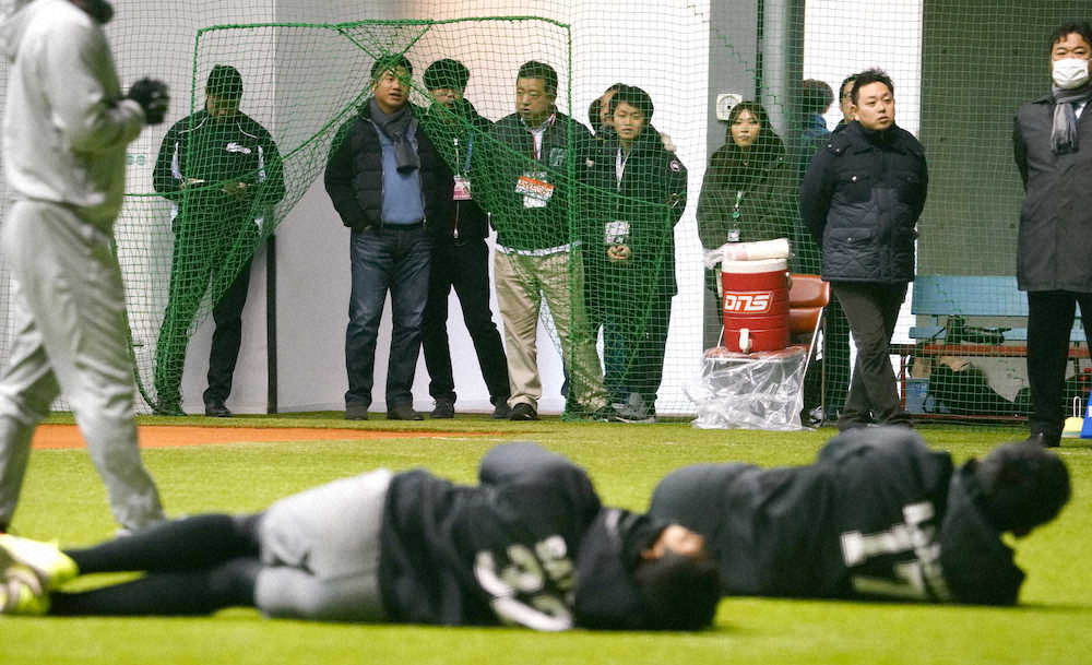 ロッテの井口資仁監督が15日、ZOZOマリンでの新人合同自主トレを2日続けて視察。今季の開幕投手について「ガチンコバトル」となることを予告した。