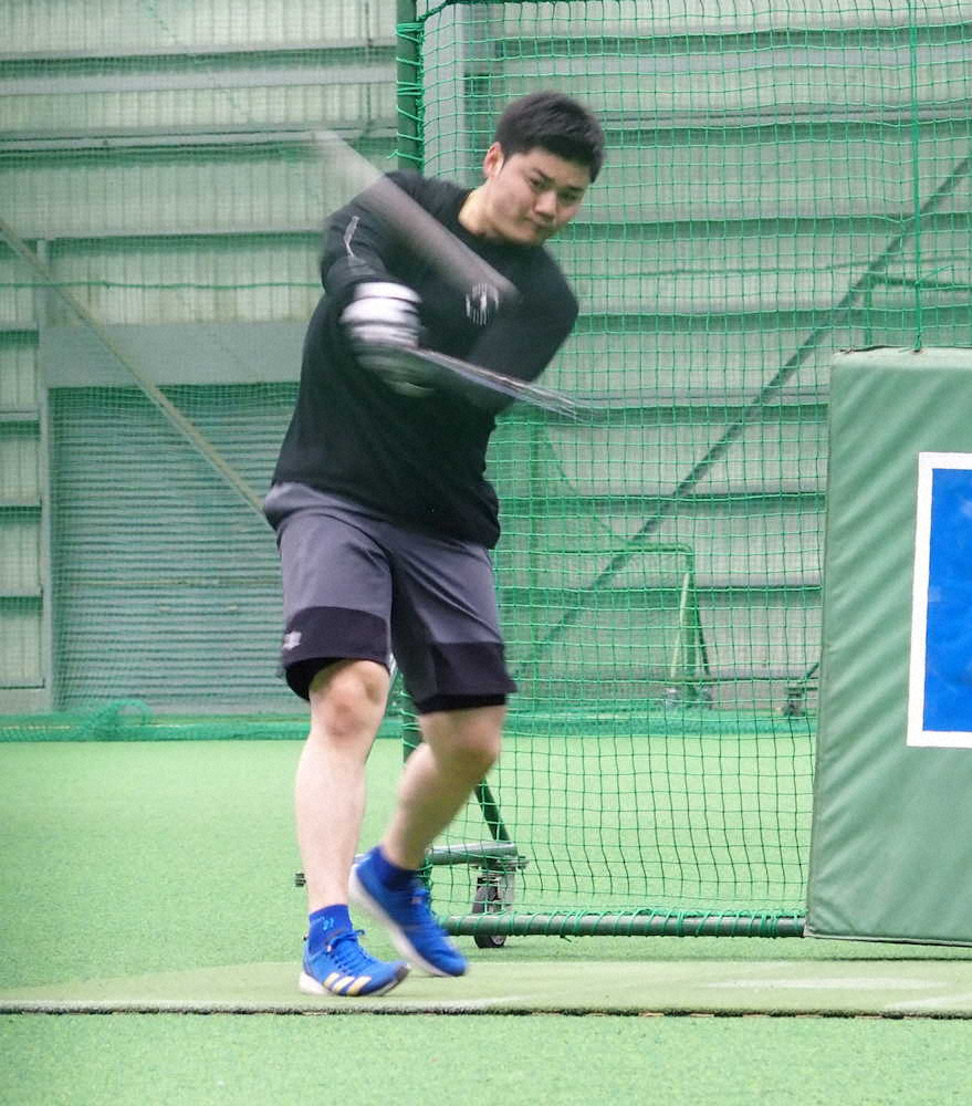 山なりの球ながら、ティー打撃から一歩前進。「最初はタイミングが合わず変な感じだったけど、何球かいい打球が打てた。肘も全然問題ない」と振り返った。真価が問われるプロ3年目。「いい時の自分をイメージしながら打っています。リトルリーグ世界大会です」。12年に東京北砂リトルの一員として世界一に輝き「和製ベーブ・ルース」と米国で報道された長距離砲が飛躍を期す。