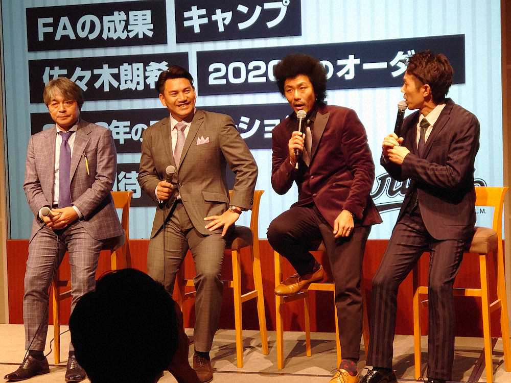 約150人のファンの前で、「FAの成果」「2020年ローテーション」「佐々木朗希」などのお題について、軽妙なトークで応えた。ソフトバンクから福田秀、楽天から美馬の獲得に成功し「直接電話で口説きました。自分も選手ならば、監督から口説かれるのが一番なので」と裏話も披露。注目のドラフト1位・佐々木朗(大船渡)については、「楽しみしかない。吉井投手コーチに任せています」とじっくりと育成していくことも明かした。