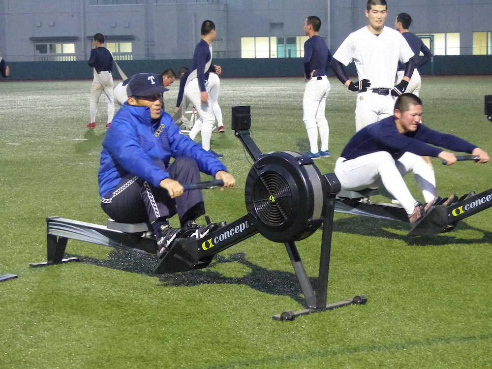 この日、練習の最後には今季から導入したソリを使った強化練習などを実施。御年70歳の前田監督もボートこぎの動作をするエルゴメーターを選手とともに行い、元気いっぱいだ。主将の加田は「全員下半身が強くなって、距離も出てきた。選ばれたら全力を出せるように準備する」。吉報は届くか。 (松井 いつき)