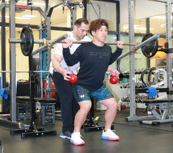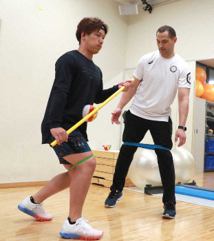 体幹強化は「室伏塾」の狙いの一つで、17年に手術を受けた腰痛の予防が目的だ。「腰の不安はあった。去年も2試合代打とか、しんどい時もあった」と吉田正。ハンマー投げで使う砲丸を両端にぶら下げたバーベルを担いで前後に体を動かす従来のトレーニングに加え、「瞬発系で打球の飛距離も上げたかった。走る、投げるという部分も上げる」と跳びはねるように行うバーベルスクワットにも励み、「五輪メソッド」を注入された。
