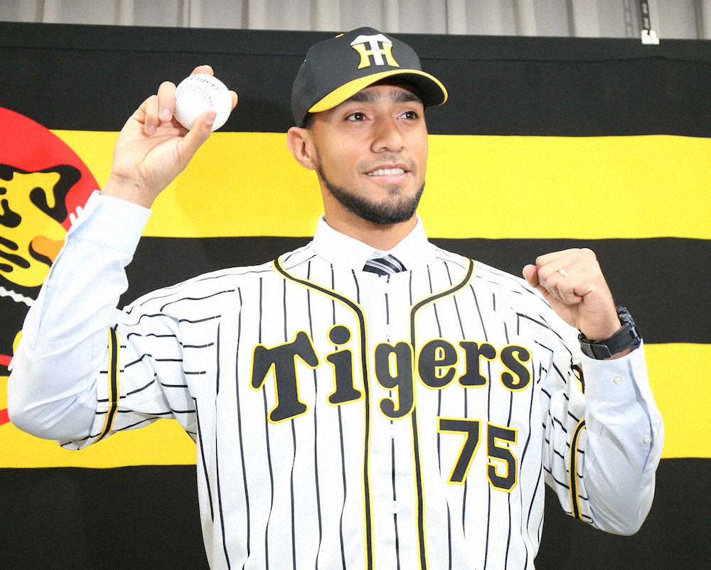 阪神入りスアレスが入団会見 救援フル回転誓う、昨季までソフトB 右肘問題なし