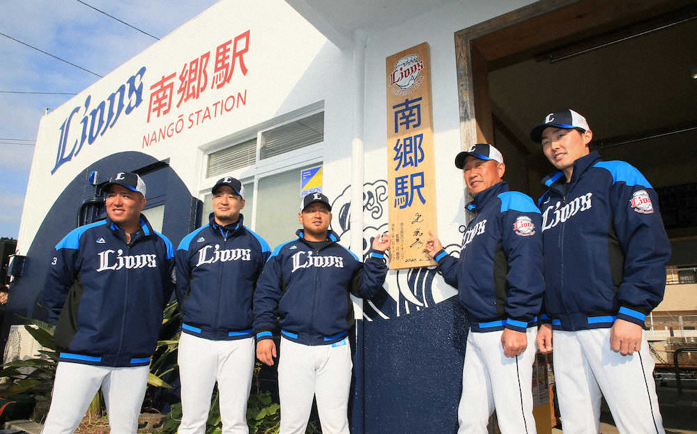 ライオンズ南郷駅お披露目セレモニーで、臨時列車の横で敬礼ポーズを決める(前列左から)森、源田、平井、山川、(後列左から)辻監督、後藤オーナー(撮影・尾崎 有希) Photo by スポニチ 西武リーグ3連覇&日本一へ出発進行!JR南郷駅をライオンズ化 ギャラリーで見る この記事のフォト 2020年02月03日の画像一覧 もっと見る 2020年02月03日の画像をもっと見る
