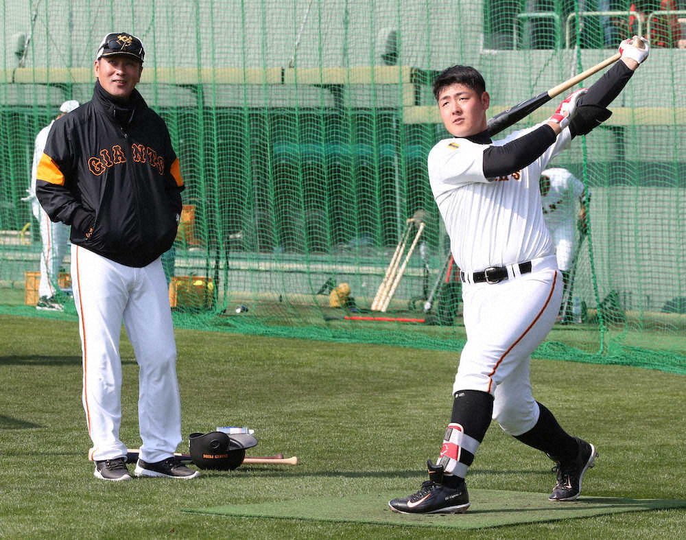 巨人・岡本 大谷を“体感”「165キロの目慣らしをしただけ」