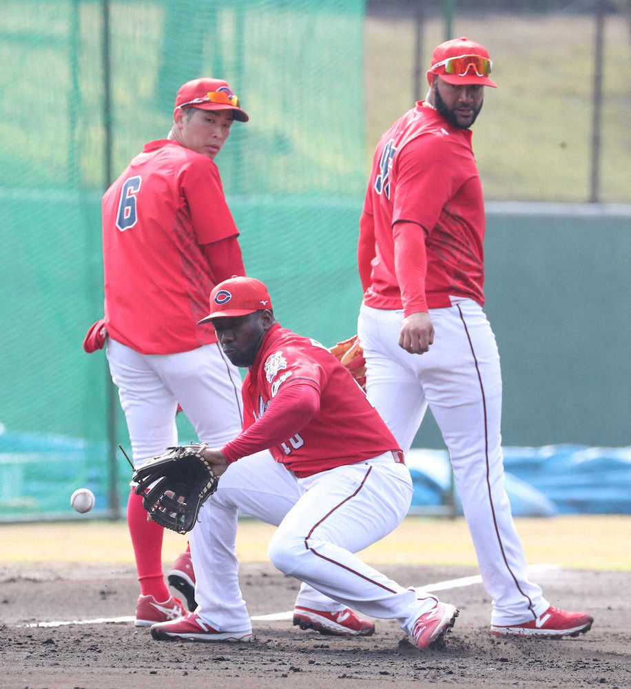 広島の新助っ人・ピレラ(フィリーズ)は、本格挑戦する三塁守備に首脳陣から高評価を与えられた。初日から4日連続で三塁に入り、安部、メヒアとノックを受けた。全力での送球は控えているものの、目立ったミスもなく軽快なグラブさばきを披露。