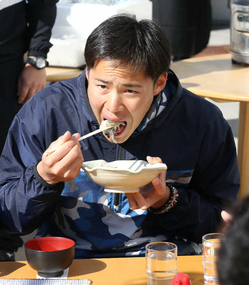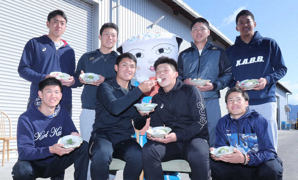 食レポに挑戦した遠藤(左から2人目)だったが、キャンプ地・安芸を「あんげい」と読み違えて及川、西純、井上ら同期を爆笑させる(撮影・成瀬 徹) Photo by スポニチ 阪神新人8選手がちりめん加工場を見学 ドラ4・遠藤が食レポで珍発言 ギャラリーで見る この記事のフォト 2020年02月06日の画像一覧 もっと見る 2020年02月06日の画像をもっと見る