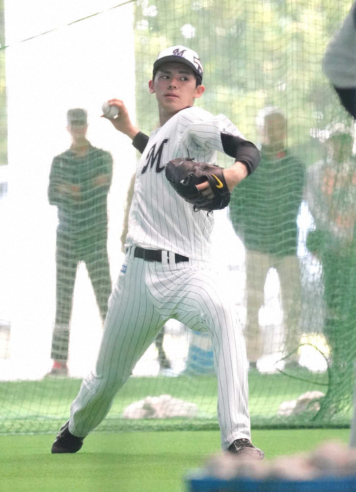 ロッテ・朗希、初めて捕手相手に23球「気持ちよく投げられた」