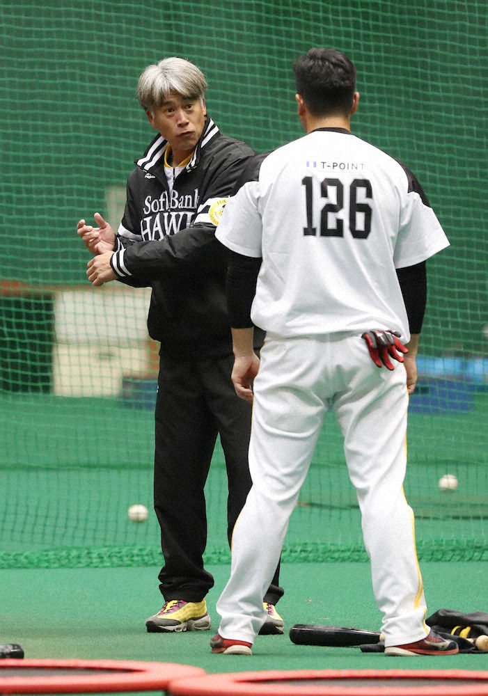 ソフトB・城島会長付特別アドバイザー 育成の黒瀬を熱心指導