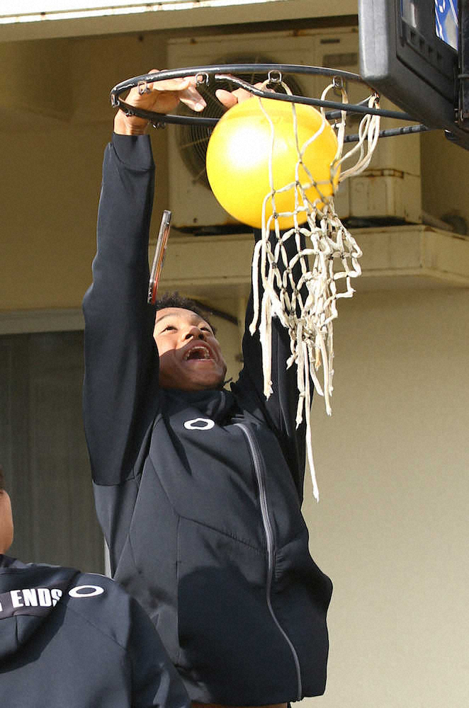 練習後は沖縄県名護市内の児童養護施設を訪問。子供の前でダンクシュートを披露し、同行した郡が「八村塁」と声を上げると「誰が八村塁やねん!」と切れのいいツッコミをする場面もあった。(東尾 洋樹)