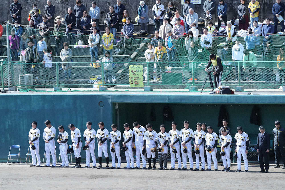 野村克也氏の訃報を受けて、阪神2軍とJR四国の練習試合前に黙祷が捧げられた。
