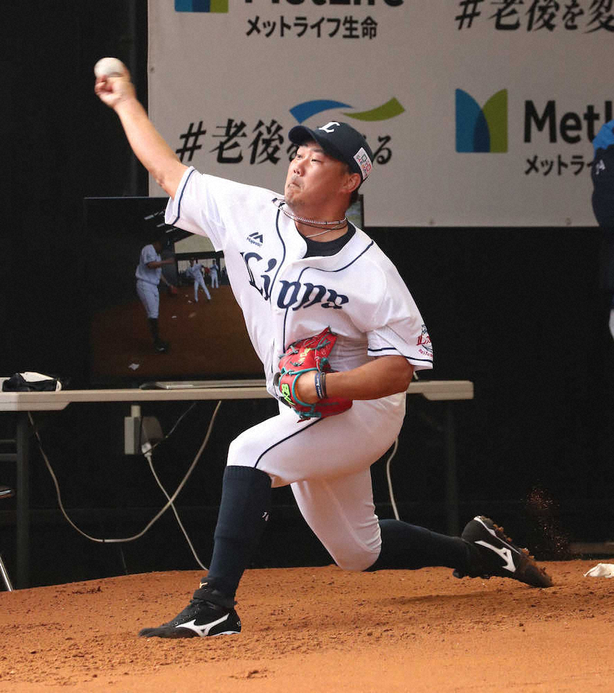 「疲れが出てくる頃だけど、肩の状態は悪くなかった」と笑顔。球団関係者を打席に立たせ「今日は(カウントを)追い込んだ状況を想定して投げた」と話した。