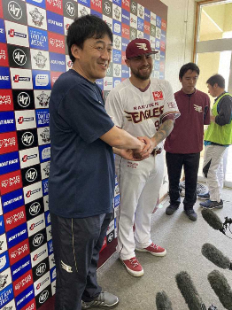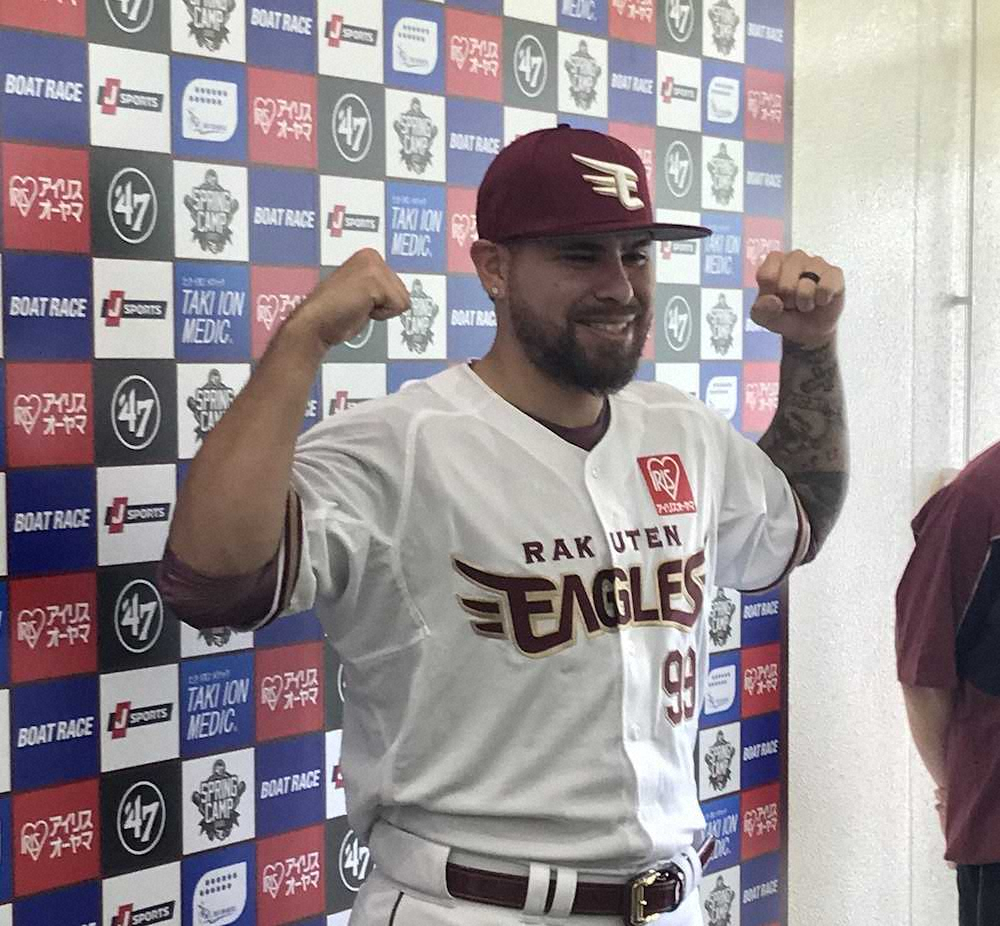 楽天の金武キャンプに合流した楽天・ロメロ(右)と石井一久GMはガッチリ握手 Photo by スポニチ 楽天 ロメロが1軍キャンプ合流「数字よりもケガなく戦うことを…」フリー… ギャラリーで見る この記事のフォト 2020年02月15日の画像一覧 もっと見る 2020年02月15日の画像をもっと見る
