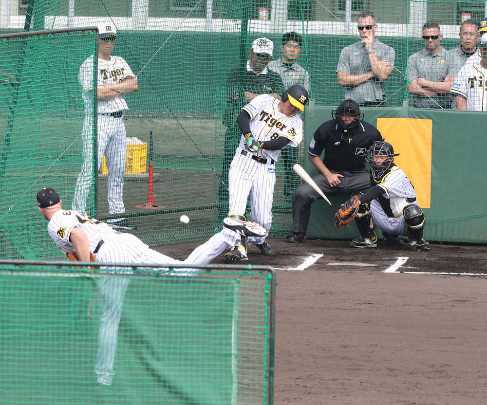 この日は投球フォームとストライクゾーンを確認しながら37球。「ジャイロスライダー」とカーブでも空振りを奪うなど、安打性の打球はゼロだった。矢野監督も「ベースに来ると、そんな簡単に打てそうな感じはなかった。(タイプ的に)日本ではあまりいないんじゃないかな。俺は(昨季在籍した)ジョンソンに近いと思っている」と改めて高評価。PJに代わるセットアッパー候補は頼もしいかぎりだ。(惟任 貴信)