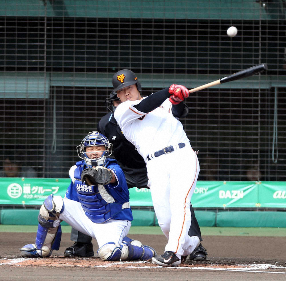 巨人・岡本和真内野手(23)が15日、韓国・サムスンとの練習試合の初回に先制適時打を放った。