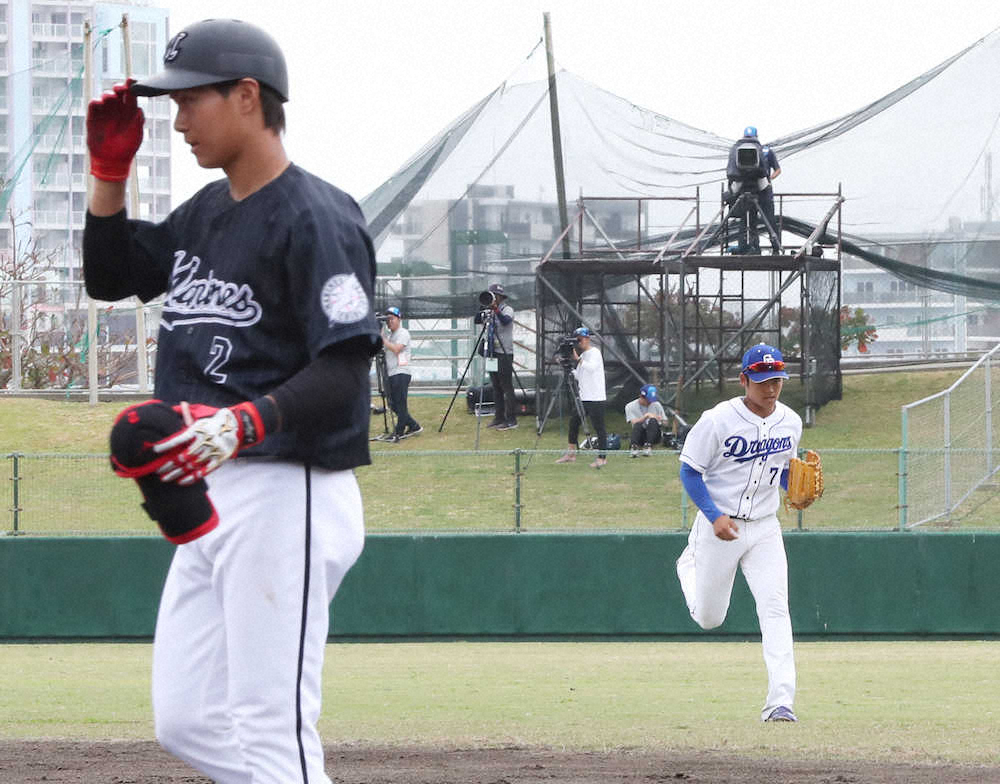 中日とロッテの練習試合が15日、中日のキャンプ地である沖縄・北谷で行われ中日・根尾とロッテ・藤原がともに「1番・中堅」でスタメン出場した。