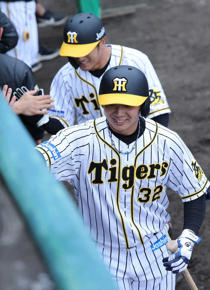 そのまま「3番DH」に入り、続く6回の第2打席は1死一、二塁の好機。2球目を中前に運んで“初タイムリー”を放ち「怪物や!」「早く1軍で見たい」と虎党のあふれんばかりの期待が聞かれた。8回に代打を送られ交代。2打数2安打(1本塁打)3打点とこれ以上ない結果だった。