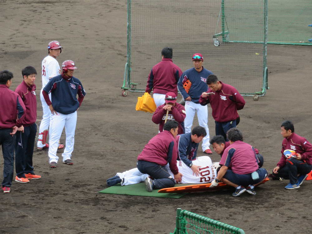 この日、安部井寛チーム統括本部長は「脳振とうの症状は現在ないが、この後、腫れが出るなどのリスクが高い。骨折しているので形成手術の可能性もある」と説明。球団は安全対策として打撃投手にヘルメットの着用を義務付けた。
