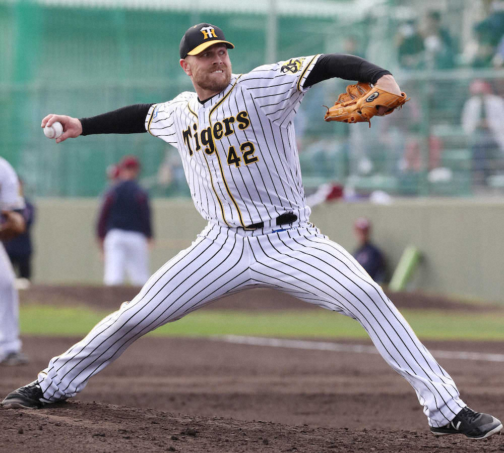 上々の実戦デビューを飾った。5回から来日初登板した阪神のエドワーズは1回打者3人をわずか8球で抑え、涼しい顔で振り返った。