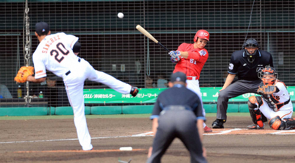 初回1死一塁から3番に入った4年目捕手・坂倉の右中間三塁打で先制すると、鈴木が左犠飛。さらに西川、ピレラの連打の後、安部が右に3ラン。巨人の新外国人サンチェスに猛打を浴びせた。