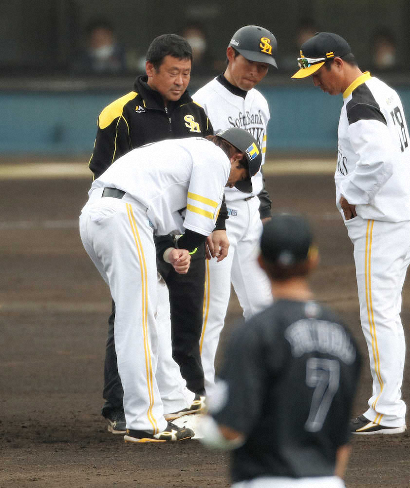 ソフトバンク・松田宣が今季初の対外試合に臨み、5回の第2打席で中前打を放った。しかし、直後に小野のけん制球が左肘付近に当たり、途中交代し「多分、大丈夫。でも明日になってみないと」と話した。