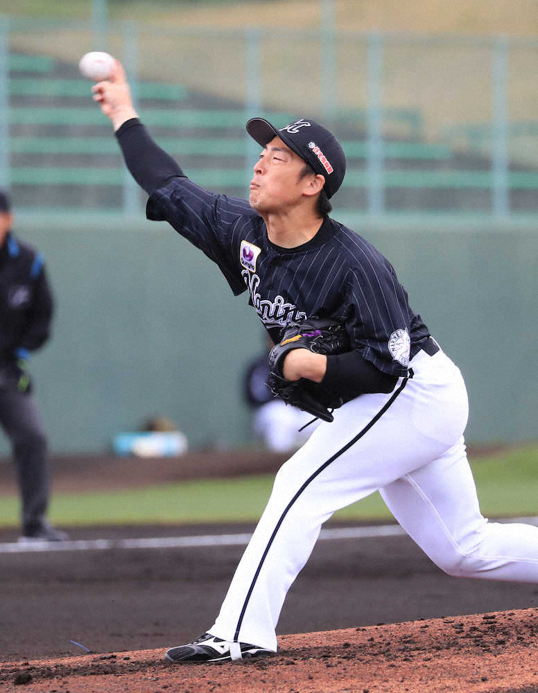 オリックスとの練習試合に先発したロッテ・美馬(撮影・井垣 忠夫)