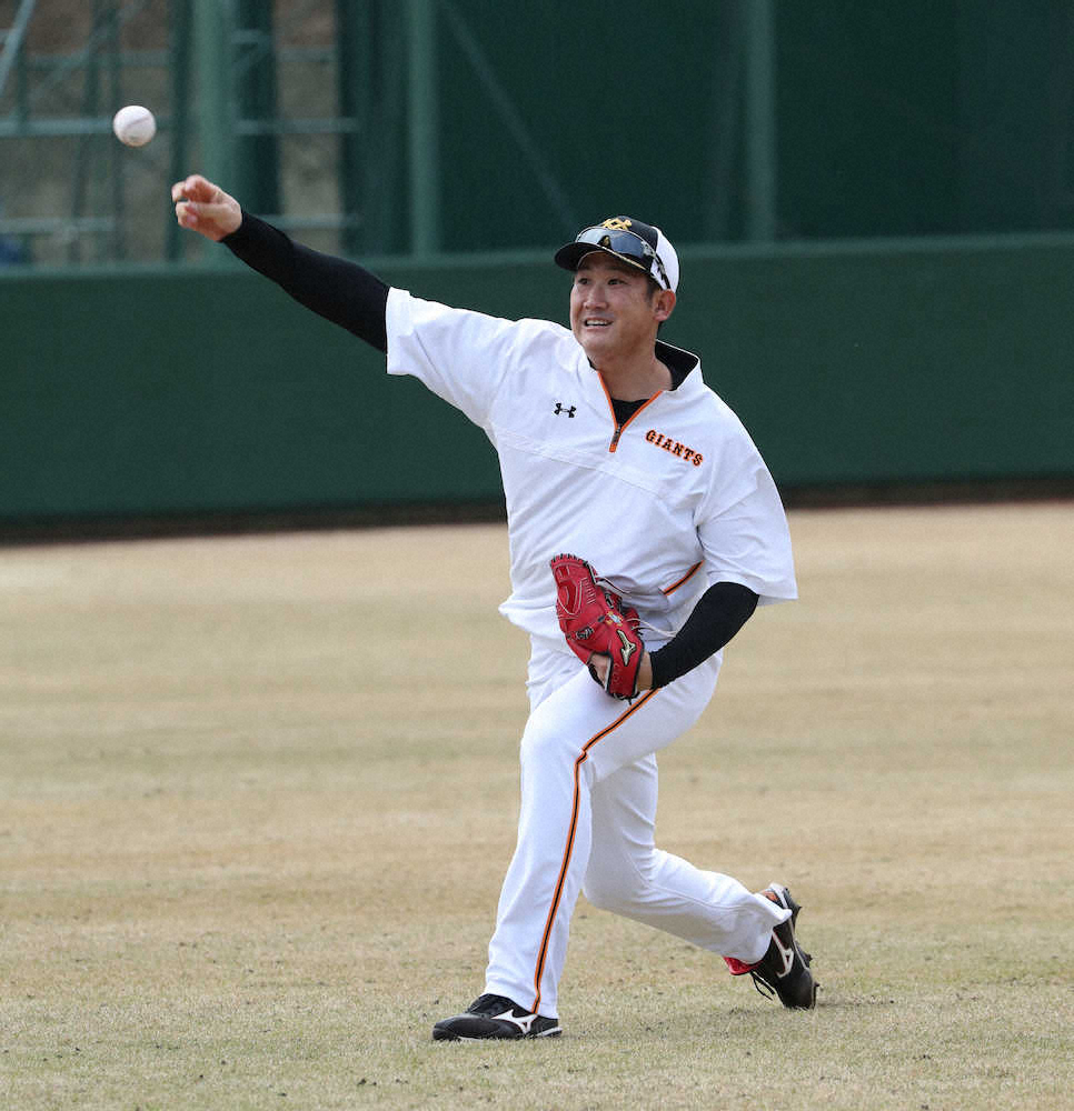 キャッチボールする菅野(撮影・尾崎 有希)