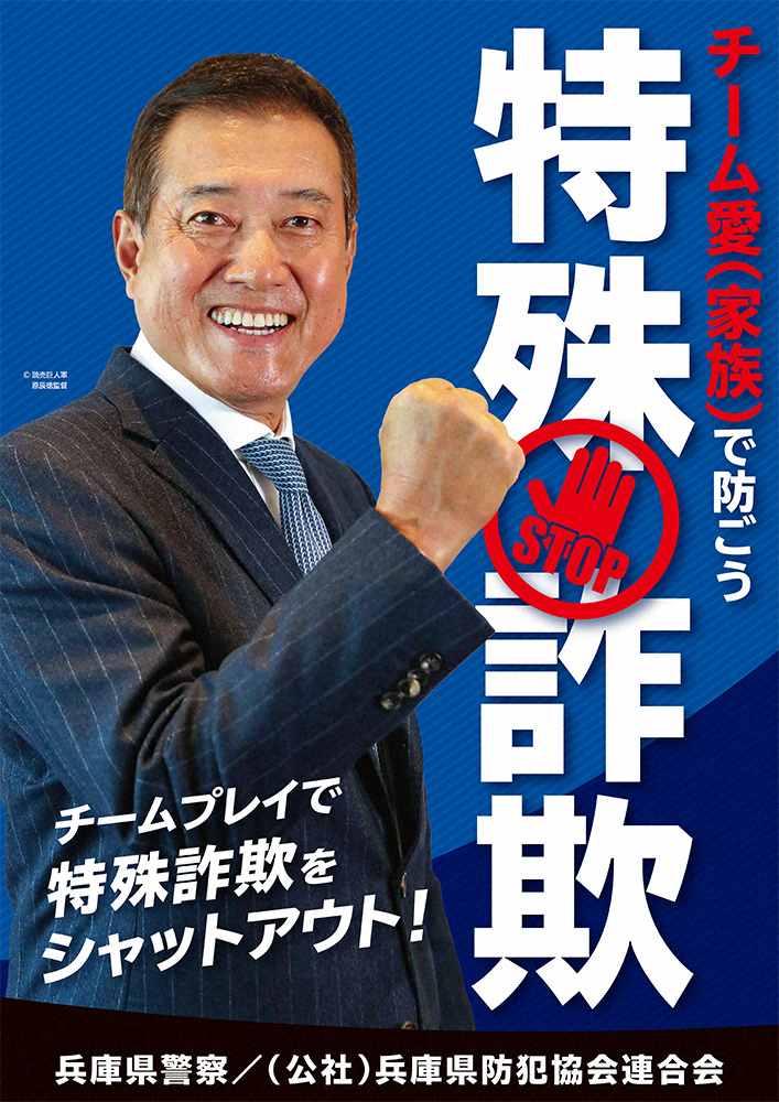 兵庫県警が作製した特殊詐欺被害防止を目的とした広報啓発用ポスターに起用された巨人・原辰徳監督