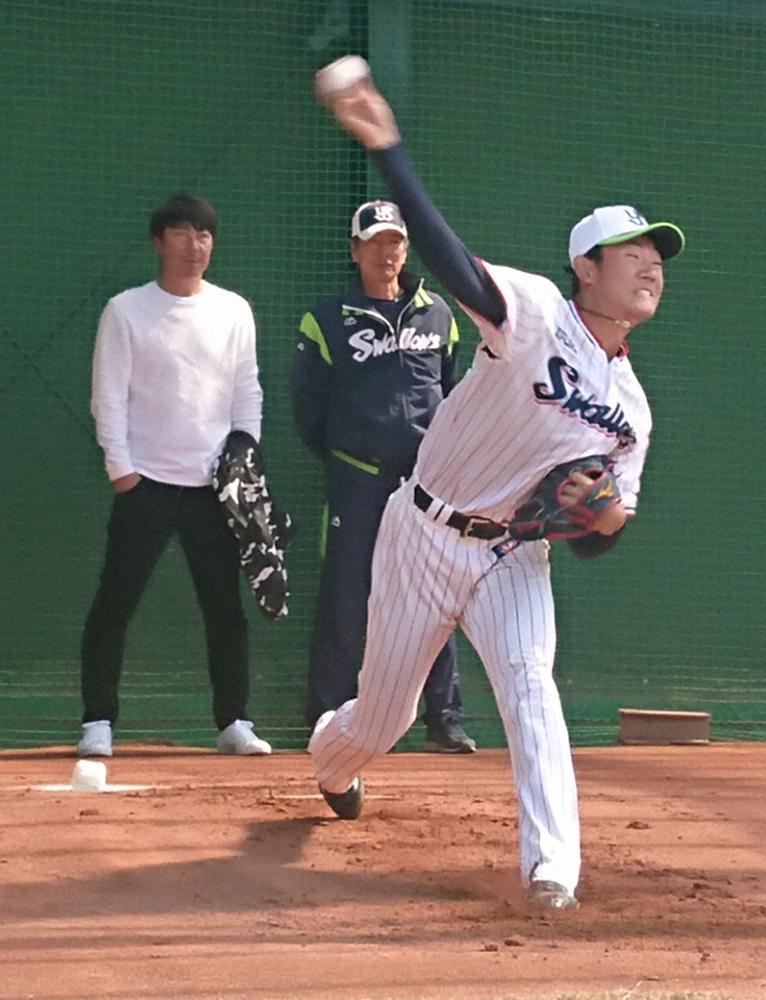 初めて審判も付き、6割を超える34球がストライク。神宮での全体練習前に足を運び、初めて奥川の投球練習を視察した高津監督は「やっぱりバネがある。下半身を使って投げられた時は素晴らしかった」と評した。次回のブルペン入りは24日で変化球も解禁する予定だ。