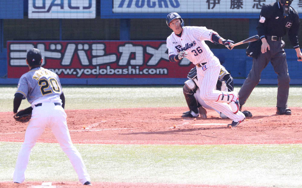 試合前には高津監督から「小さくならずに。三振を怖がらず、ドンドンいけ」とアドバイスを受けての一発。「(監督の)一言で楽になった。割り切っていけた」と感謝していた。